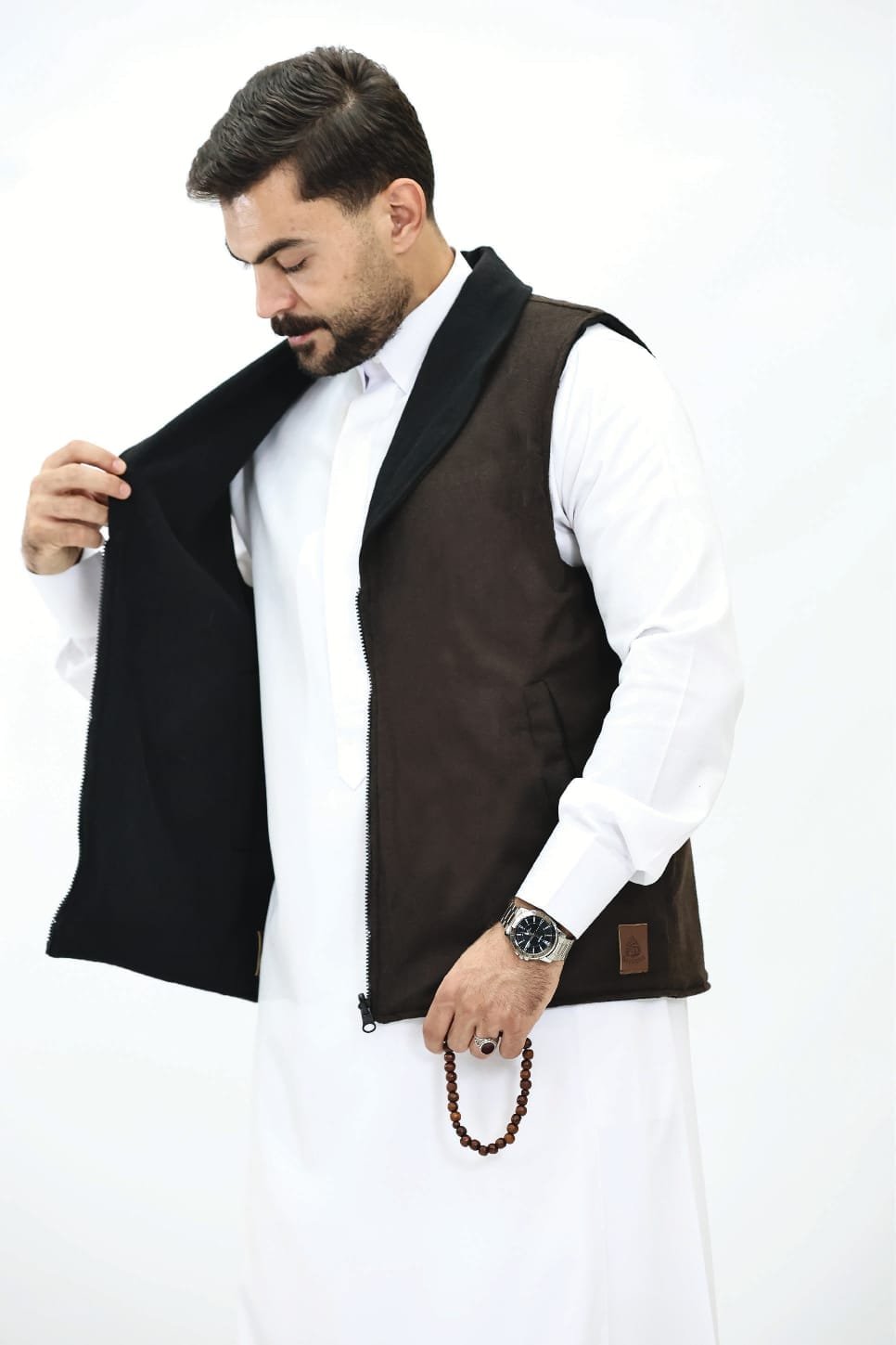 اكتشف قمة الأناقة العملية مع هذا السديري ذو الوجهين الفاخر، المصمم خصيصًا ليمنحك خيارات متعددة لإطلالة متجددة. يتميز الوجه الأول باللون الأزرق الداكن الأنيق مع نسيج مميز يضفي لمسة من الرقي الكاجوال، بينما يقدم الوجه الثاني لون البيج الدافئ والملمس الناعم المخملي الذي يوفر راحة فائقة وشعورًا لطيفًا على البشرة. يضمن السحاب الأمامي الكامل سهولة الارتداء والخلع، وتضيف الجيوب العملية على كلا الجانبين لمسة وظيفية لا غنى عنها. مثالي للارتداء فوق الثوب أو القميص، هذا السديري يكمل مظهرك اليومي ويضيف طبقة من الدفء والأناقة، مما يجعله الخيار الأمثل للمناسبات المتنوعة والأيام الباردة. إنه القطعة المثالية للرجل العصري الذي يقدر الجودة، التنوع، والأناقة الفريدة.