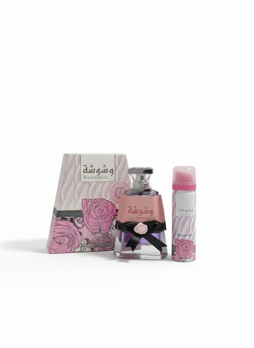 عطر وشوشة washwasha ، من لطافة للعطور Lattafa. وشوشه هو عطر الزهور الشرقية للمرأة. رائحته في الدقائق الاولئ هي التوت، والفلفل الوردي والبرتقال المر. بعد نص ساعه تكون رائحته هي زهرة البرتقال الفرنسية، أوسمانثوس، والياسمين، مسك الروم وزهر البرتقال. اما بعد ساعتين من الاستخدام تكون رائحته هي الجاوي والفانيليا والعنبر والمسك والخشب الكشميري وفول التونكا.