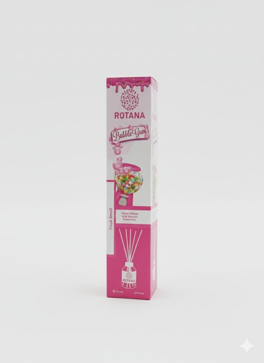 روتانا علكة الفقاعات (Bubble Gum): متعة وطفولة في عبوة! رائحة حلوة ومرحة ومُبهجة، خيار مثالي للمناطق الترفيهية أو لمن يبحثون عن رائحة فريدة ومميزة تثير الحنين.