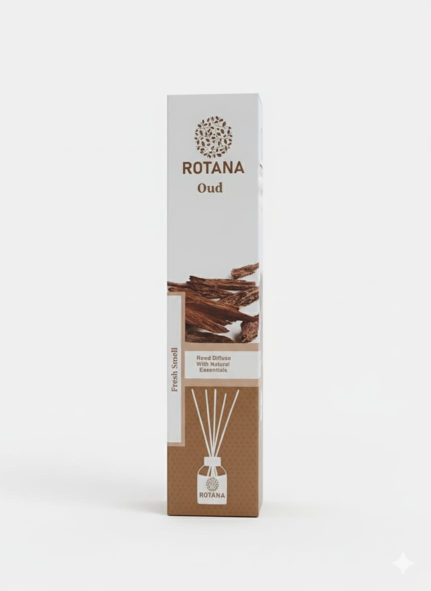 روتانا العود (Oud): للباحثين عن العمق والفخامة. رائحة شرقية غنية، خشبية ومميزة، تمنح مساحتك طابعًا كلاسيكيًا وأنيقًا .