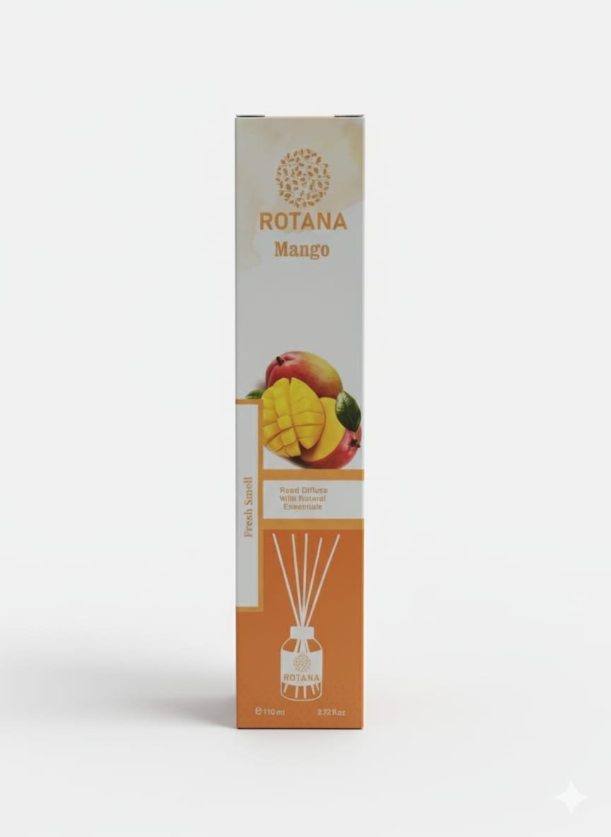 روتانا المانجو (Mango): لمسة من الدفء الاستوائي المشرق. رائحة فاكهية حلوة ومنعشة، تملأ المكان بالطاقة الإيجابية والإحساس بالسعادة.
