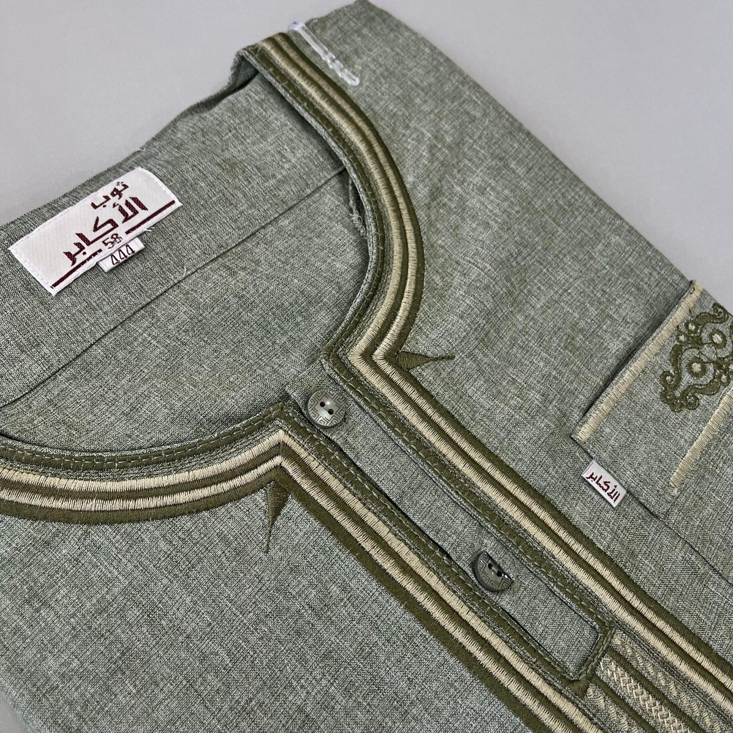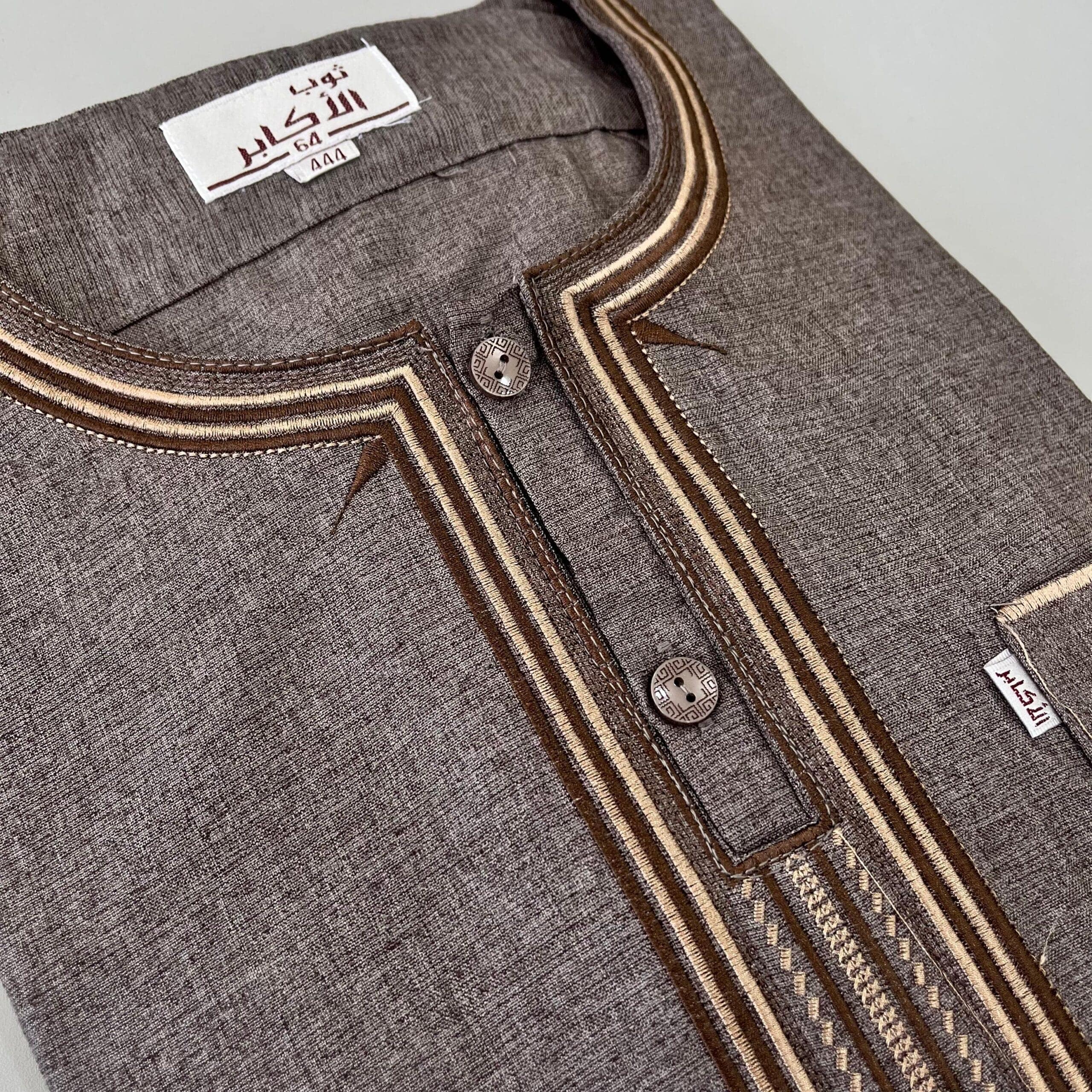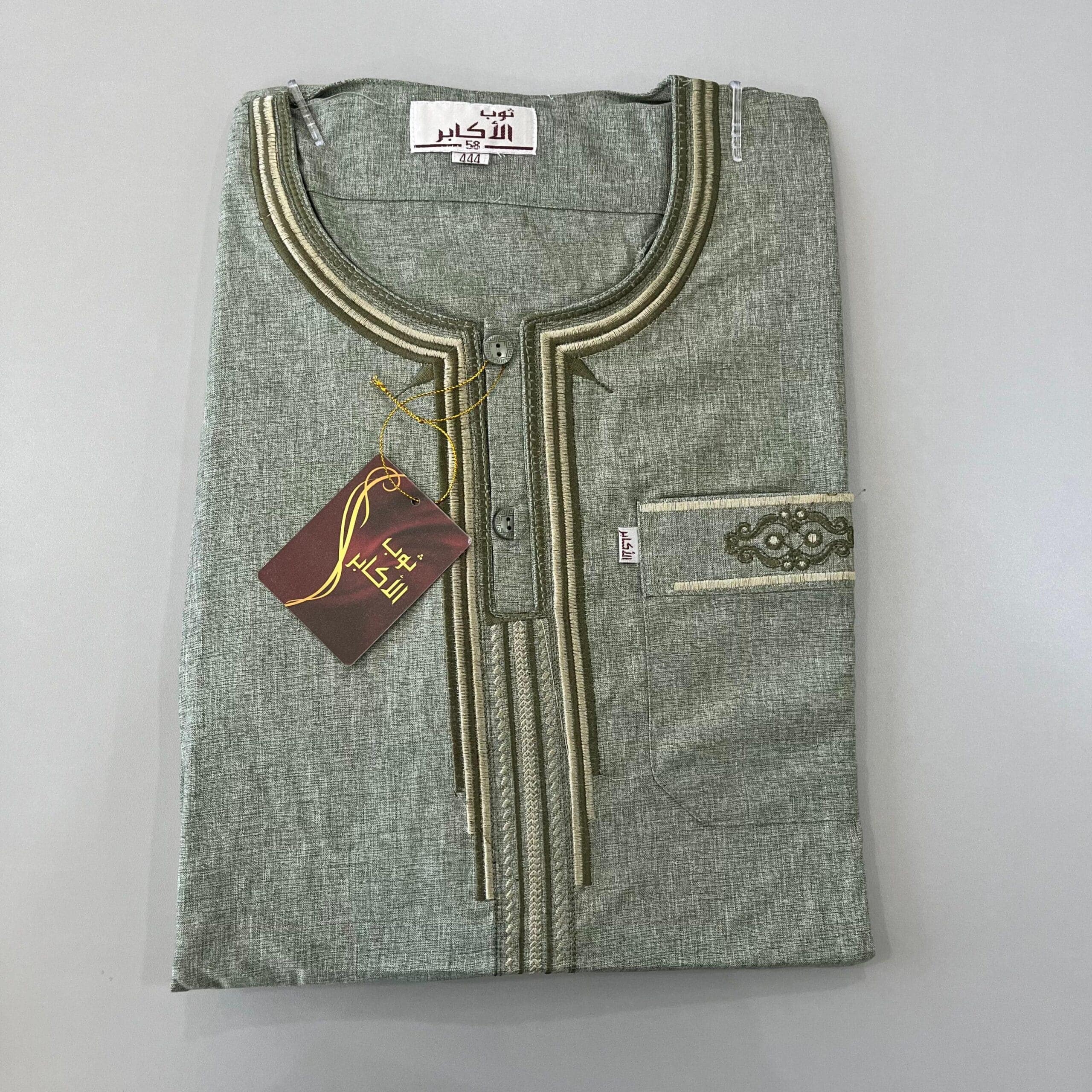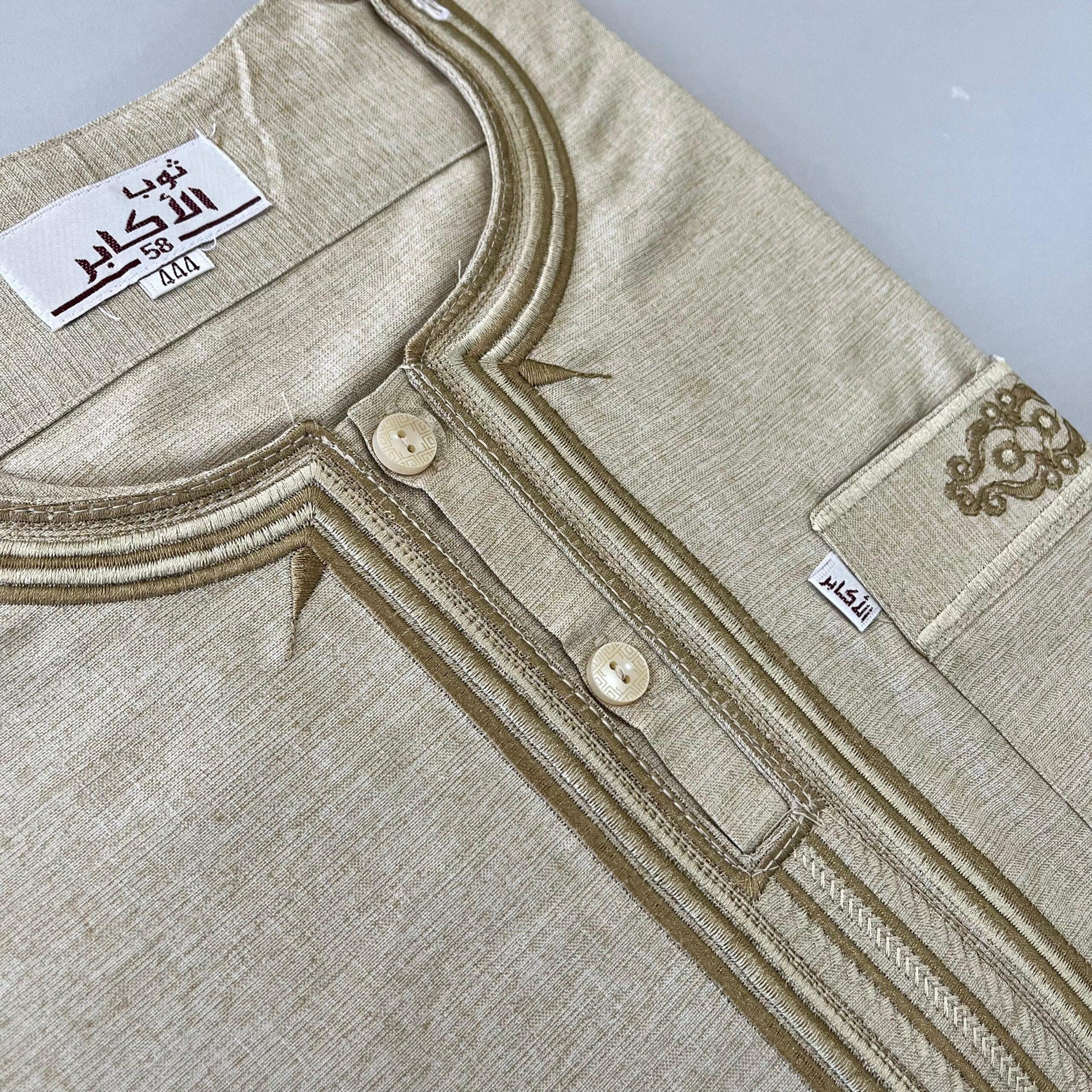 ثوب رجالي أنيق يجمع بين الفخامة والراحة بتصميم مستوحى من التراث، وتطريزات بارزة تضفي عليه طابعًا مميزًا يناسب جميع المناسبات.