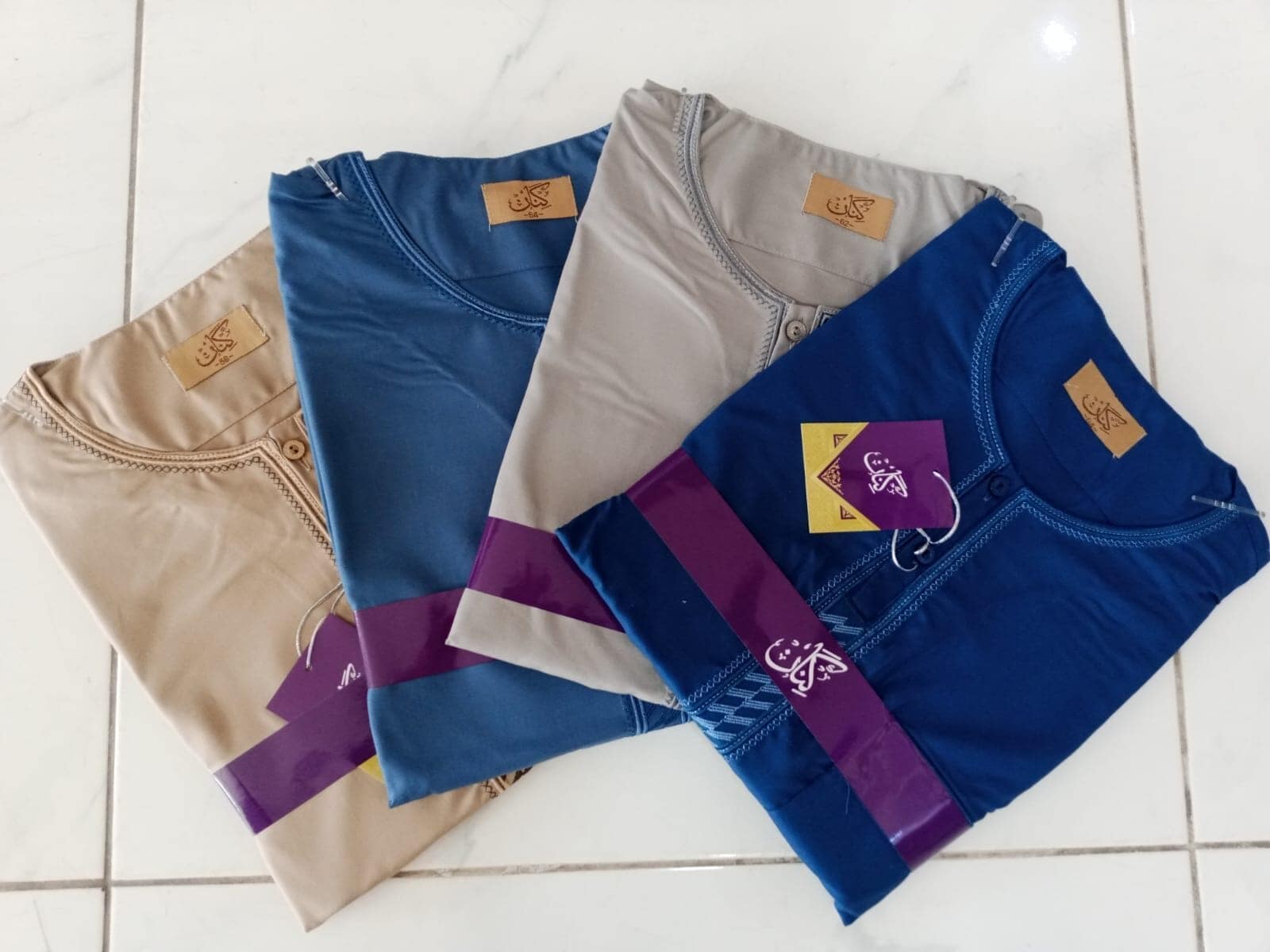 الألوان المتوفرة: أزرق داكن، بيج، رمادي فاتح، وأزرق سماوي