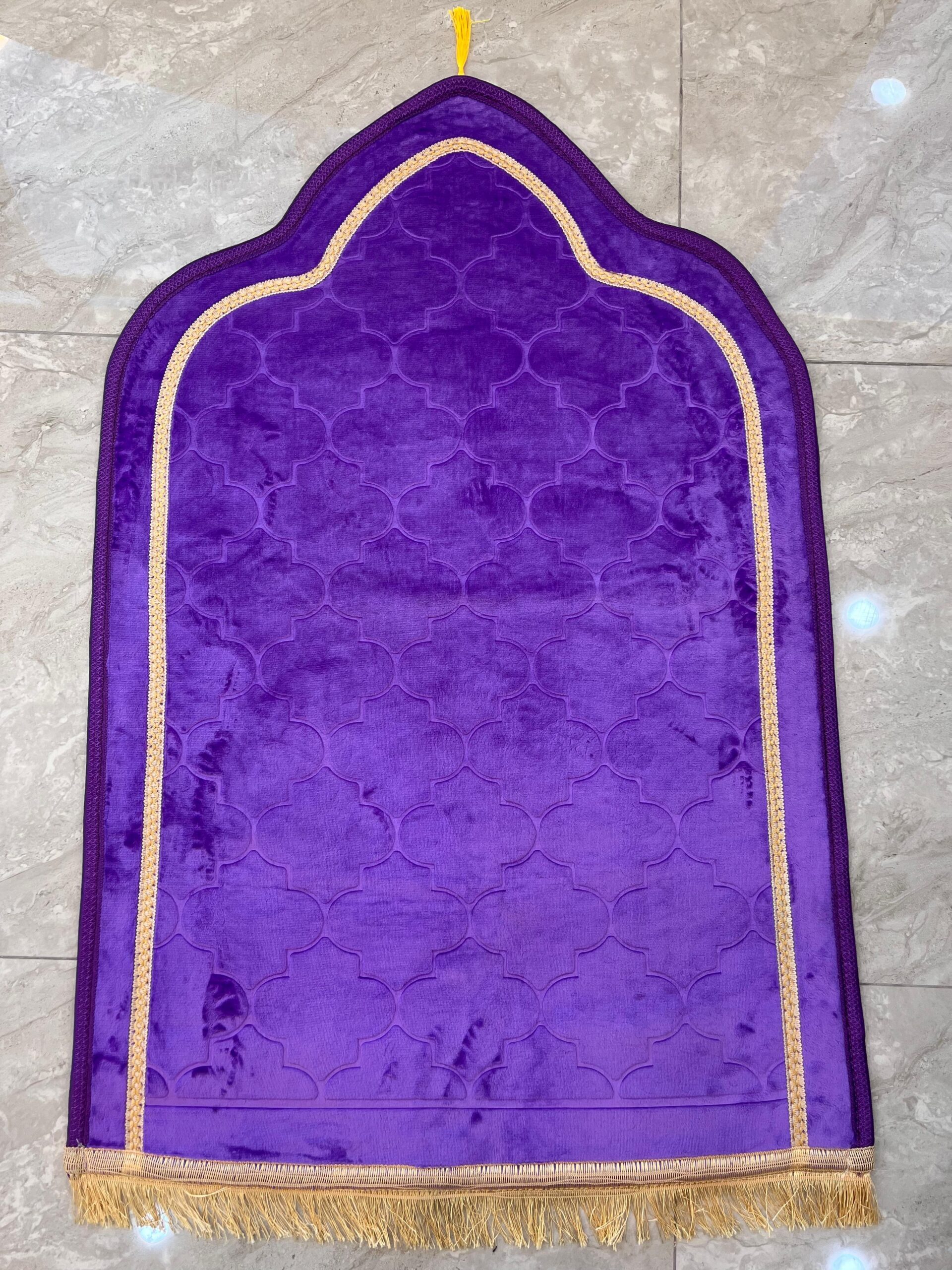 سجادة الصلاة المخملية المصنوعة بعناية فائقة. مصنوعة من خامات عالية الجودة بنعومة مخملية مريحة للركبتين، وتصميم إسلامي أنيق بتطريز فاخر وحدود ذهبية تضيف لمسة من الرقي. خفيفة الوزن وسهلة الطي، مثالية للاستخدام اليومي أو كهدية مميزة.