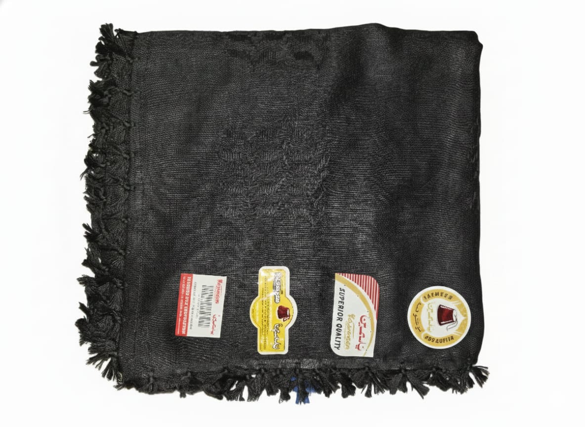 اللمسة النهائية: حواف مزينة بشراشيب كثيفة باللون الأسود، تضفي طابعًا أصيلاً ومميزًا.