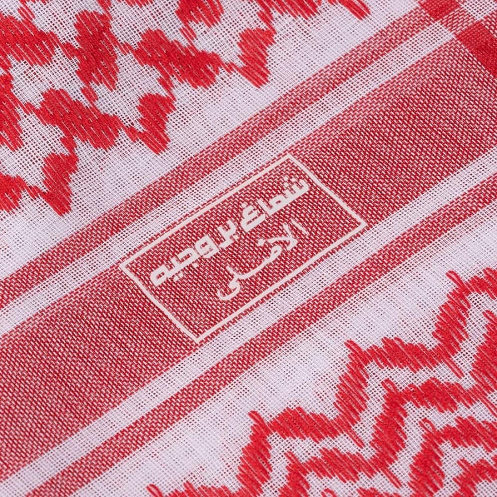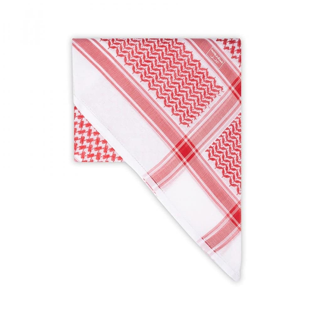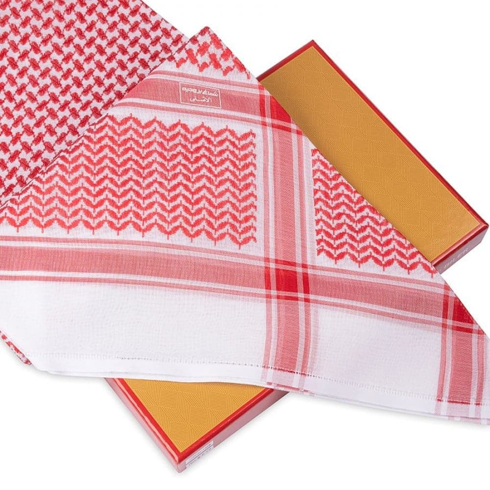 بروجيه شماغ يجمع بين اللون الأبيض والأحمر بأسلوب أنيق يبرز تميزك ويضيف لمسة من الفخامة إلى إطلالتك.