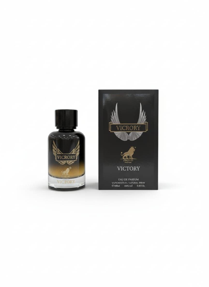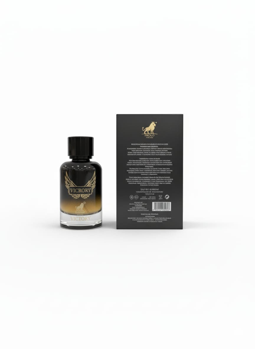 يأتي Vicrory في زجاجة أنيقة باللون الأسود والذهبي، تعكس القوة والرقي، مع شعار الأسد المجنح الذي يرمز إلى الشجاعة والانتصار. العلبة الخارجية الفاخرة تجعله الهدية المثالية لمن يستحقون الأفضل.