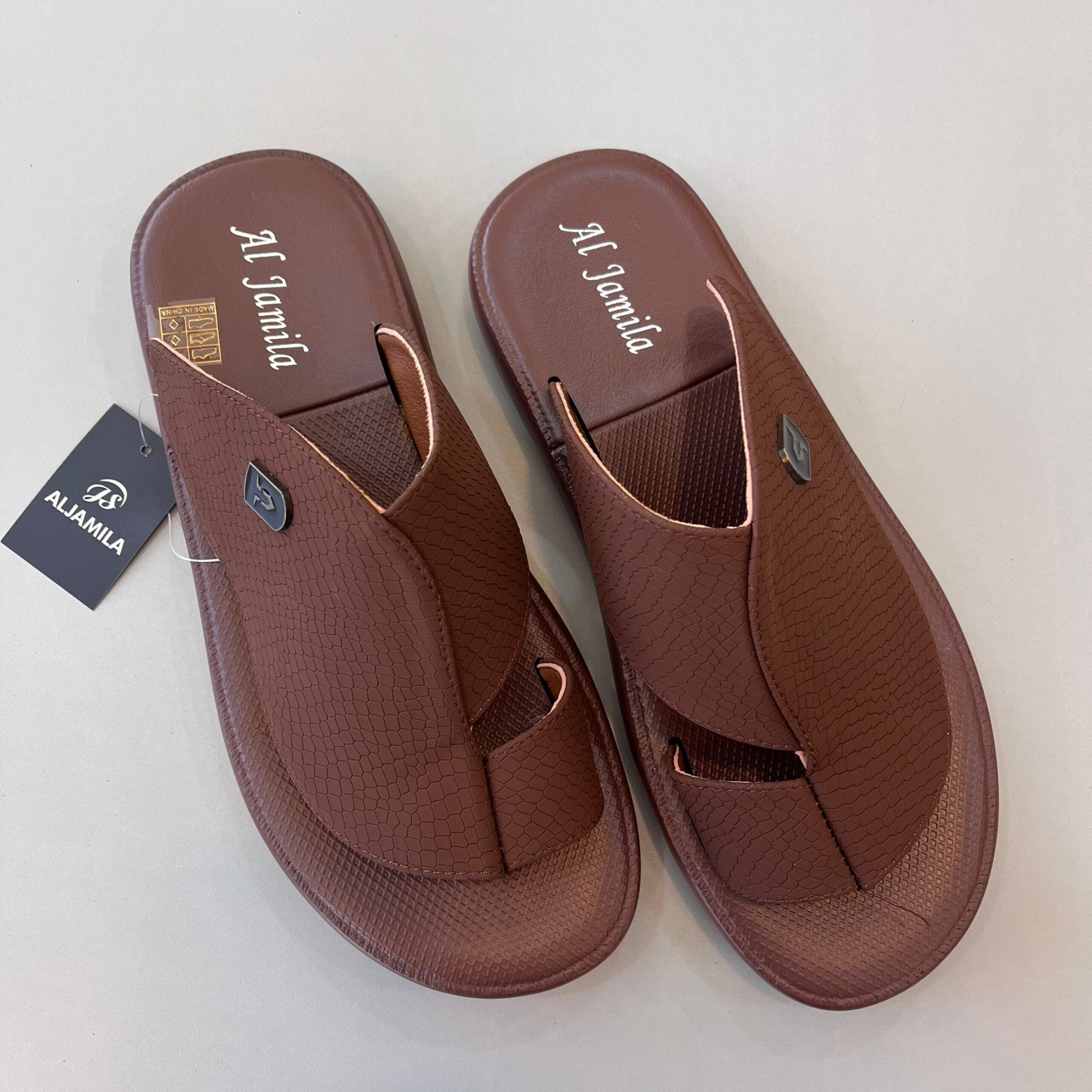 مواد خام فاخرة: تم تصنيع النعال باستخدام مواد جلدية اصطناعية عالية الجودة تشبه الجلد الطبيعي تمامًا، مما يمنحها مظهرًا راقيًا وشعورًا مريحًا على القدم.
